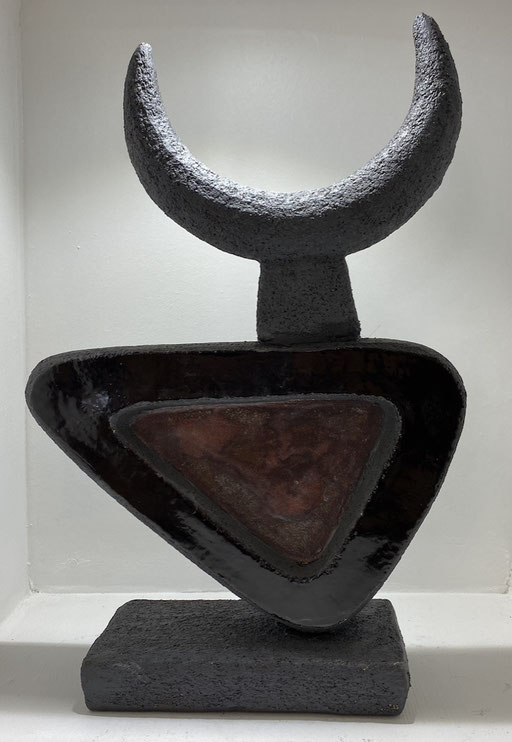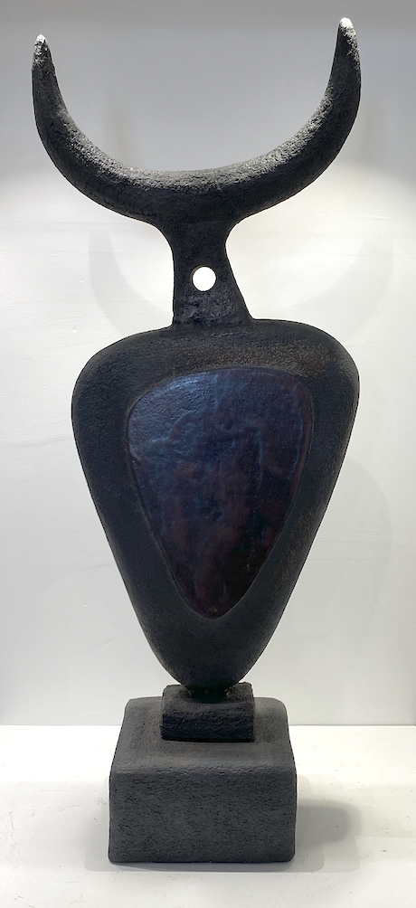 L'oxyde qu'il utilise est l'une des particularités de ses créations, une marque de fabrique; ses pièces sont d'un noir mat, profond texturé qui absorbe la lumière.