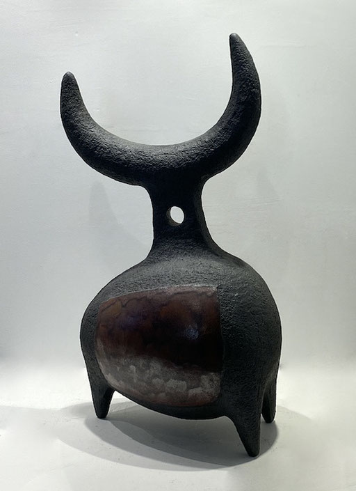 Très prolixe en silhouettes animalières, Dominique Pouchain se laisse petit à petit gagner par l'abstraction, seul un arc tendu vers le ciel évoque encore le taureau, sur certaines de ses dernières sculptures, laissant présager un éloignement progressif de la forme concrète.
