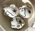 She then approaches the work of the earth and the techniques of modeling and molding in a workshop located in the Aix countryside, then deepens her knowledge of this material by turning and refocuses on the creation of unique pieces in enamelled stoneware often white and black with Mediterranean themes.